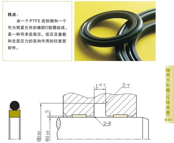 材质:聚四氟乙烯PTFE+丁晴橡胶NBR或者氟橡胶FKM